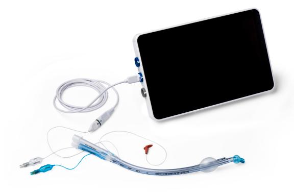 VivaSight 2 DLT is similar in design to conventional double lumen tubes, but it has a built-in video camera that connects to an Ambu monitor.