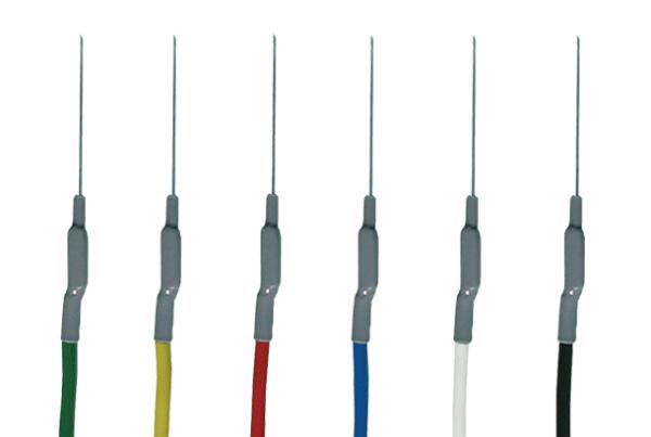 The subdermal needle is available with a pre-attached color-coded lead wire in 50 cm, 100 cm, 150 cm and 250 cm lengths.