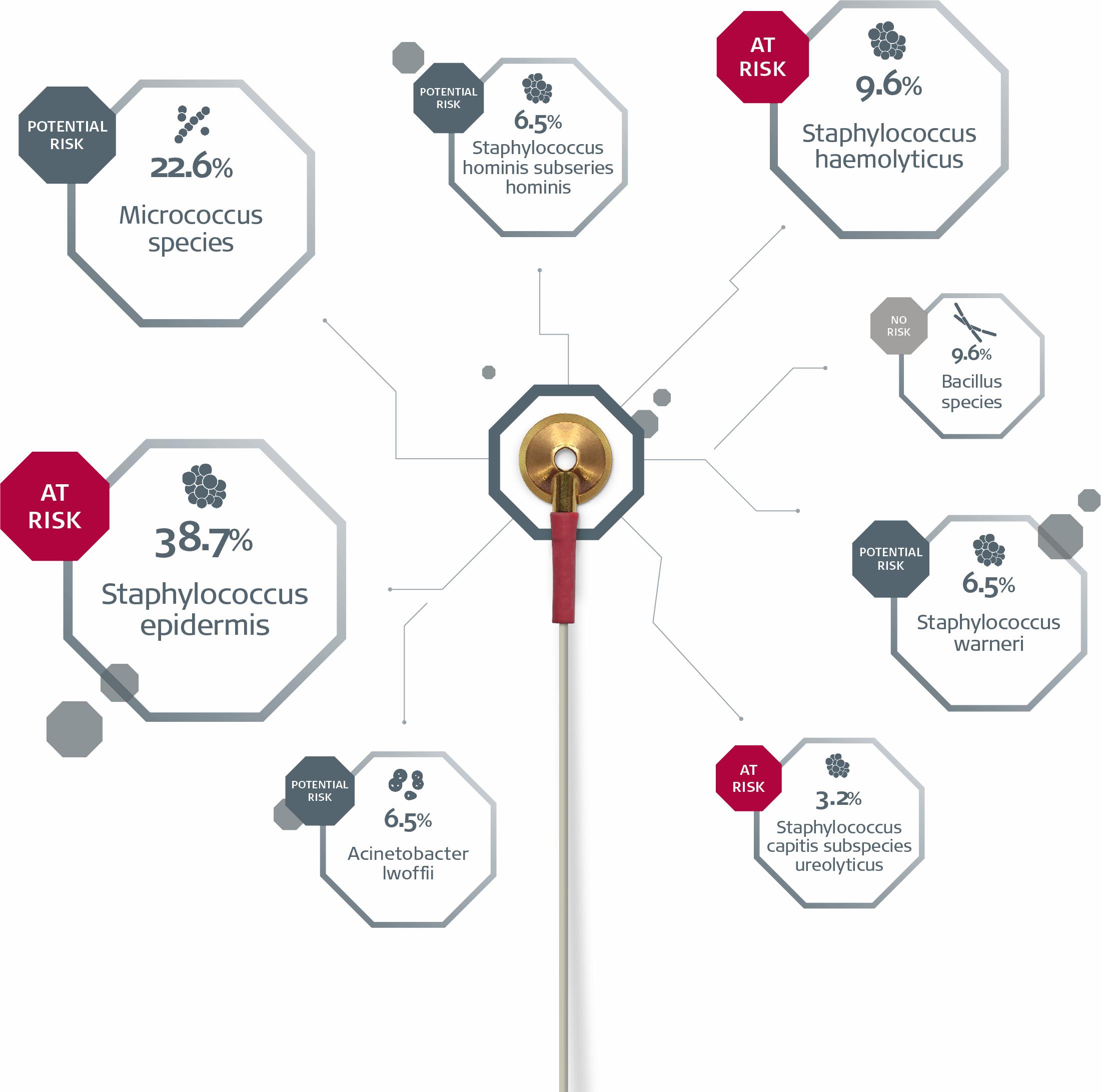 1 out of 4 were found to be contaminated.1 The positive cultures were labelled by risk of HAIs. 90% of the contaminated, cleaned, ready-to-use reusable EEG electrodes harboured bacteria with the potential to lead to HAI.1